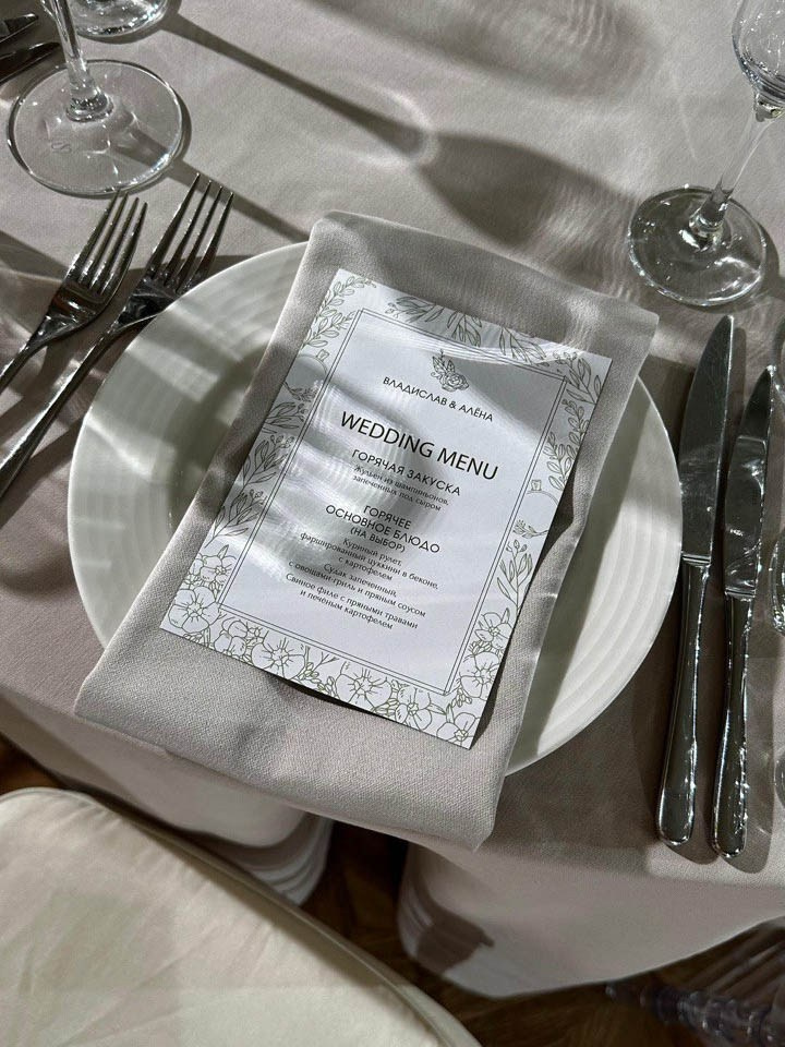 Стоимость карточки меню от 150 руб. Цена рассчитывается индивидуально в зависимости от количесва, размера, цвета и текстуры бумаги, дополнительных элементов на ней.